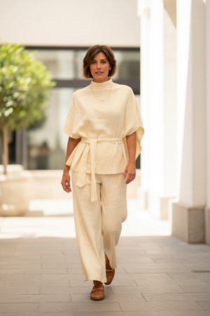 Conjunto de blusa estilo morcego, com cinto para modelagem ...