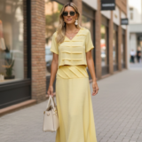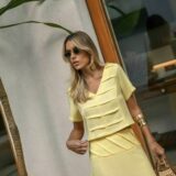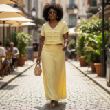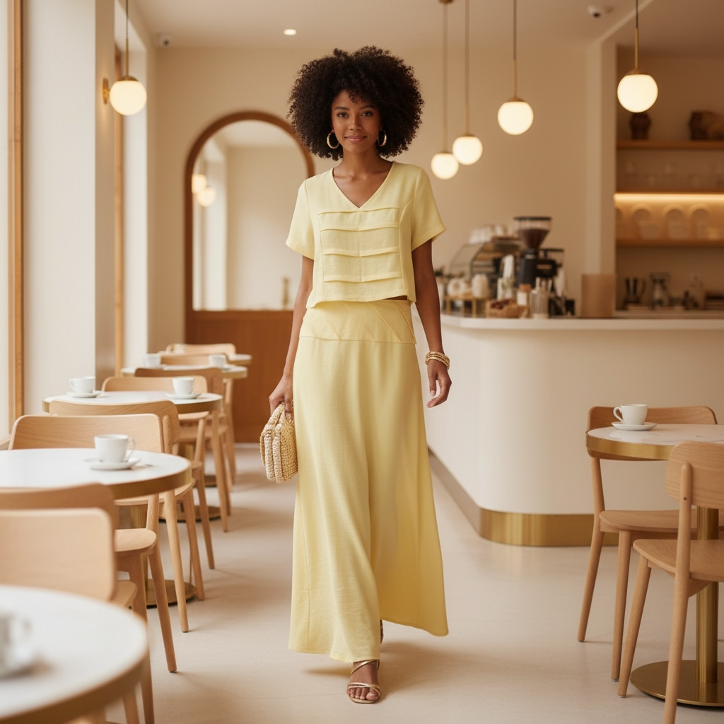 Conjunto de Blusa Cropped e Saia Confeccionada em Algodão.