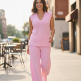 Conjunto de Regata e Calça em Tricot Fang.