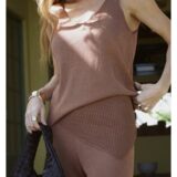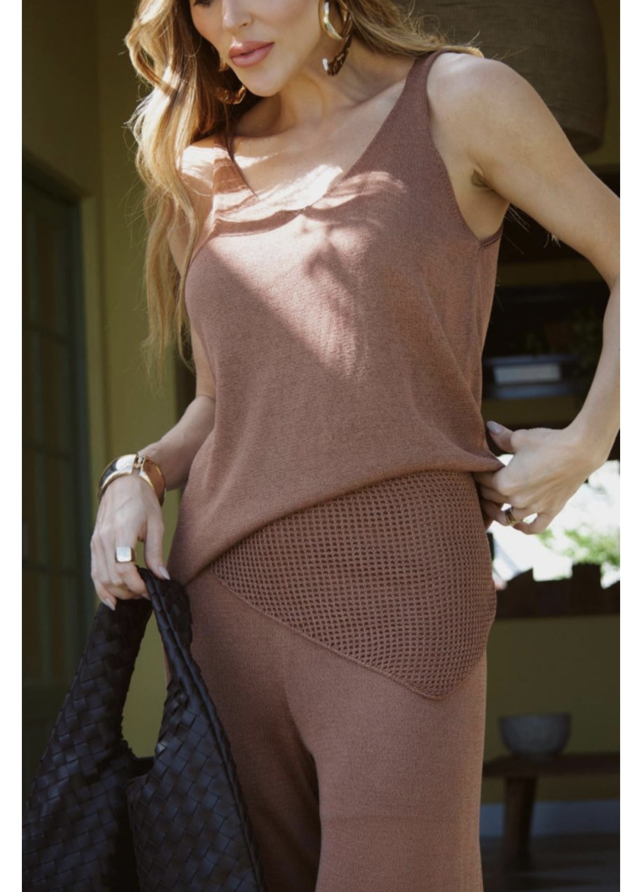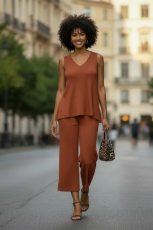 Conjunto de Regata, Lenço e Calça em Tricot.