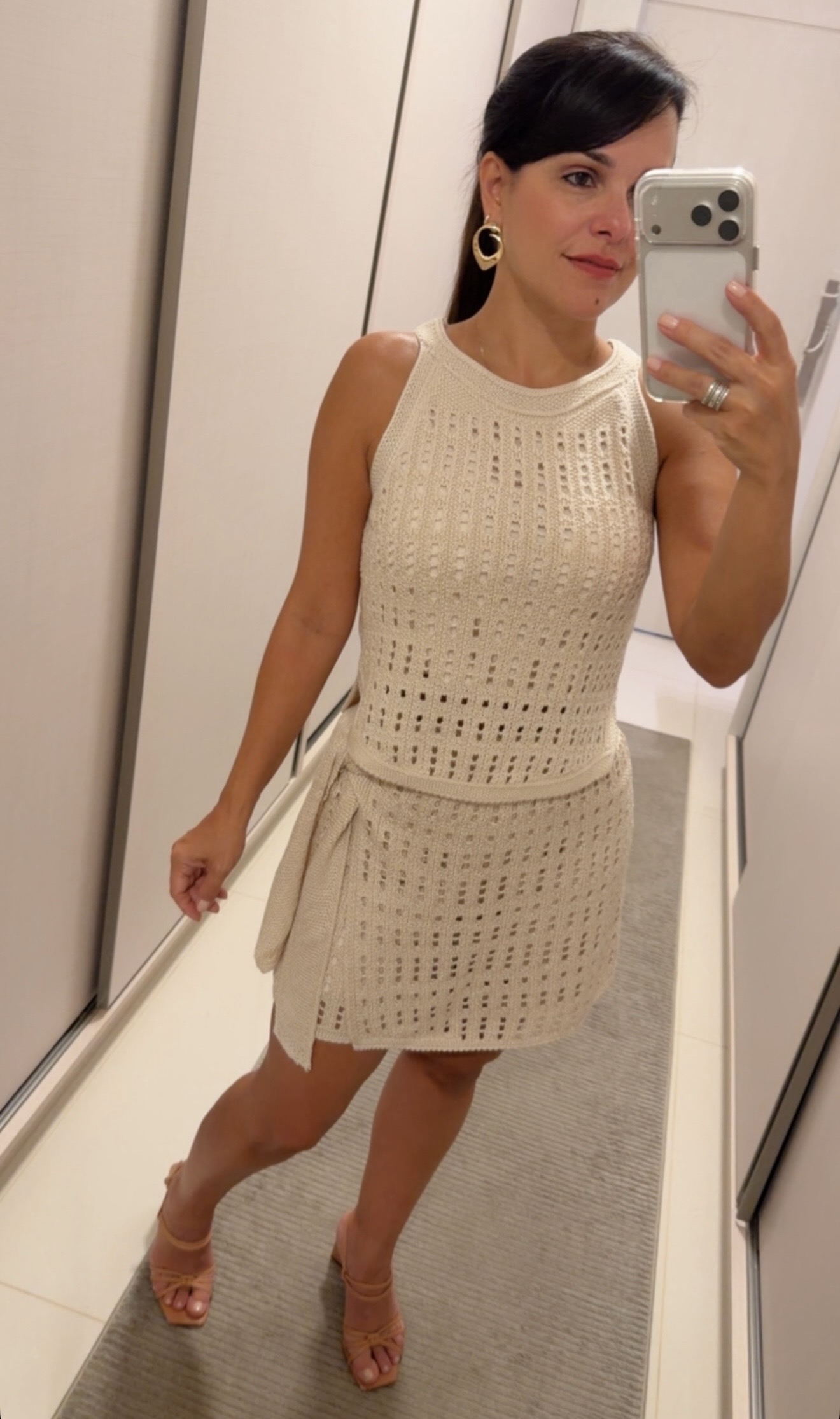 Conjunto de regata e shorts/saia em Tricot.