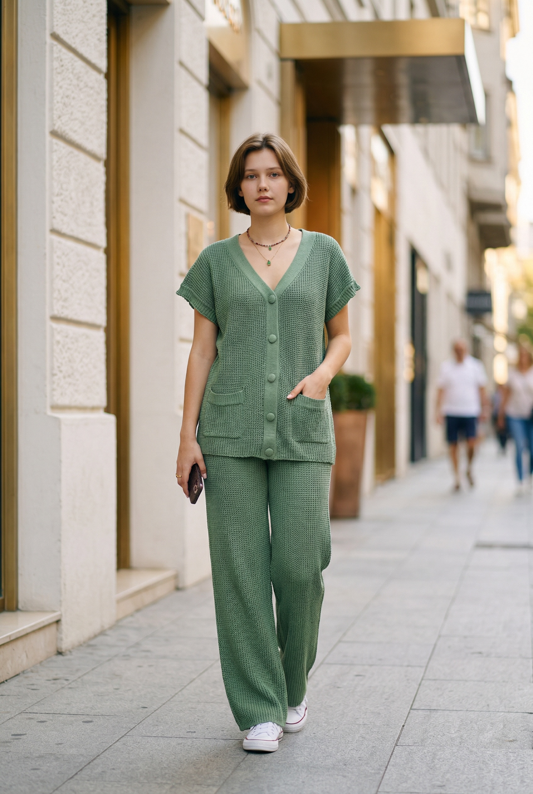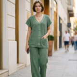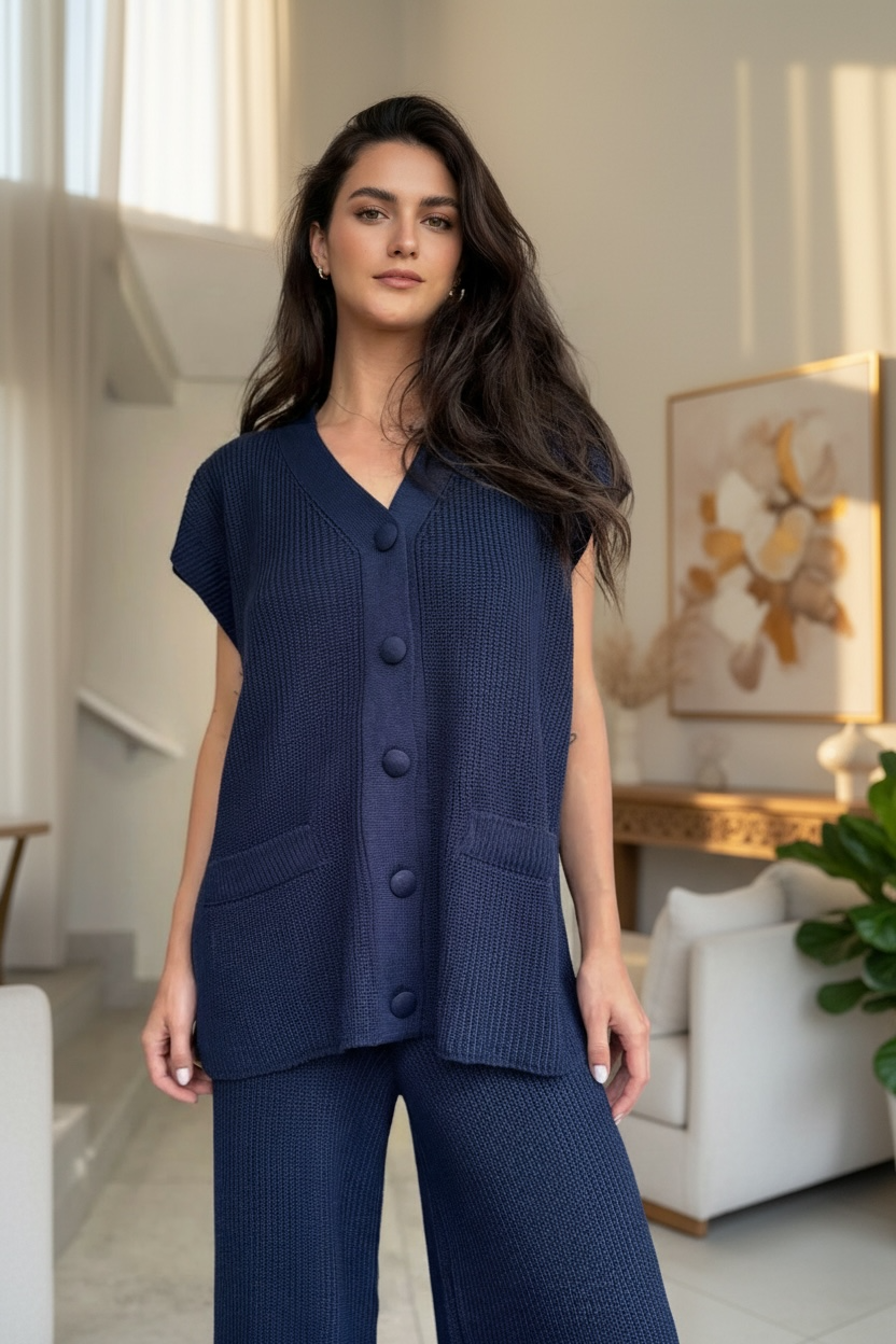 Conjunto em Tricot com Blusa e Calça.