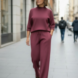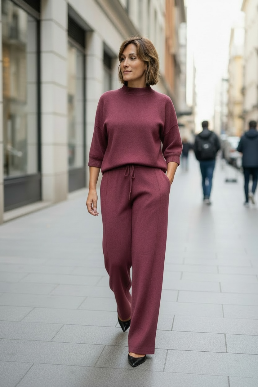 Conjunto em Manga 3/4 e Calça com Bolsos Frontais em Tricot Modal Encorpado.