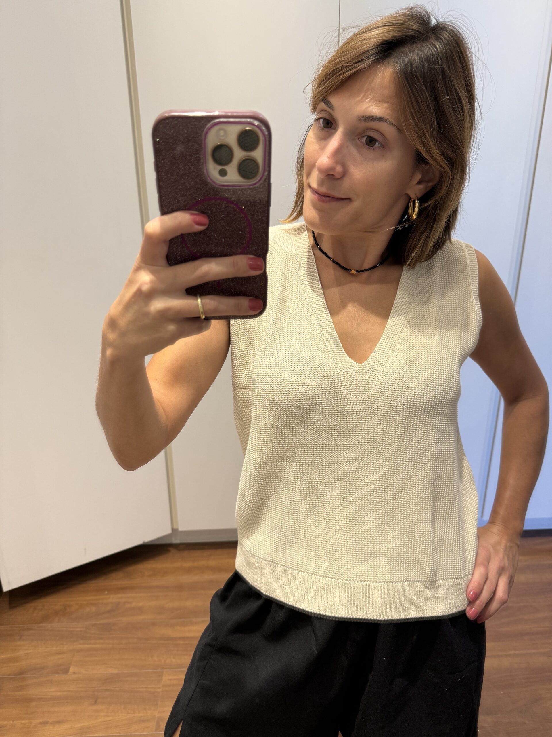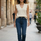 Regata gola V em Tricot cor Areia.