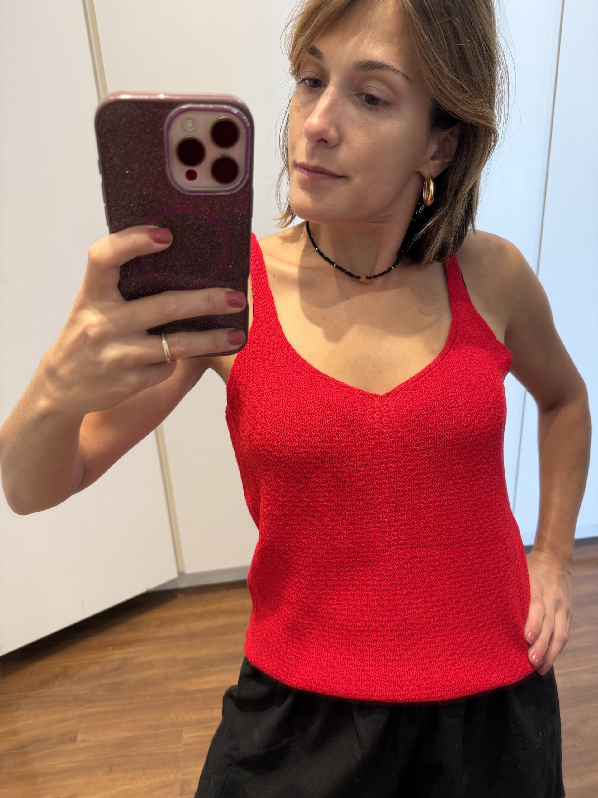 Regata em Tricot na cor Vermelha.